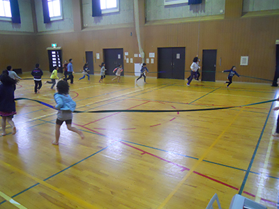 次から次へと遊びが展開され、あっという間に1時間が過ぎました。10℃を切る寒さの体育館でしたが、体も心もぽっかぽかに暖まりました。