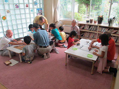 地域に住んでいる囲碁・将棋の名人が、子どもたちに囲碁と将棋を教えに来てくれています。