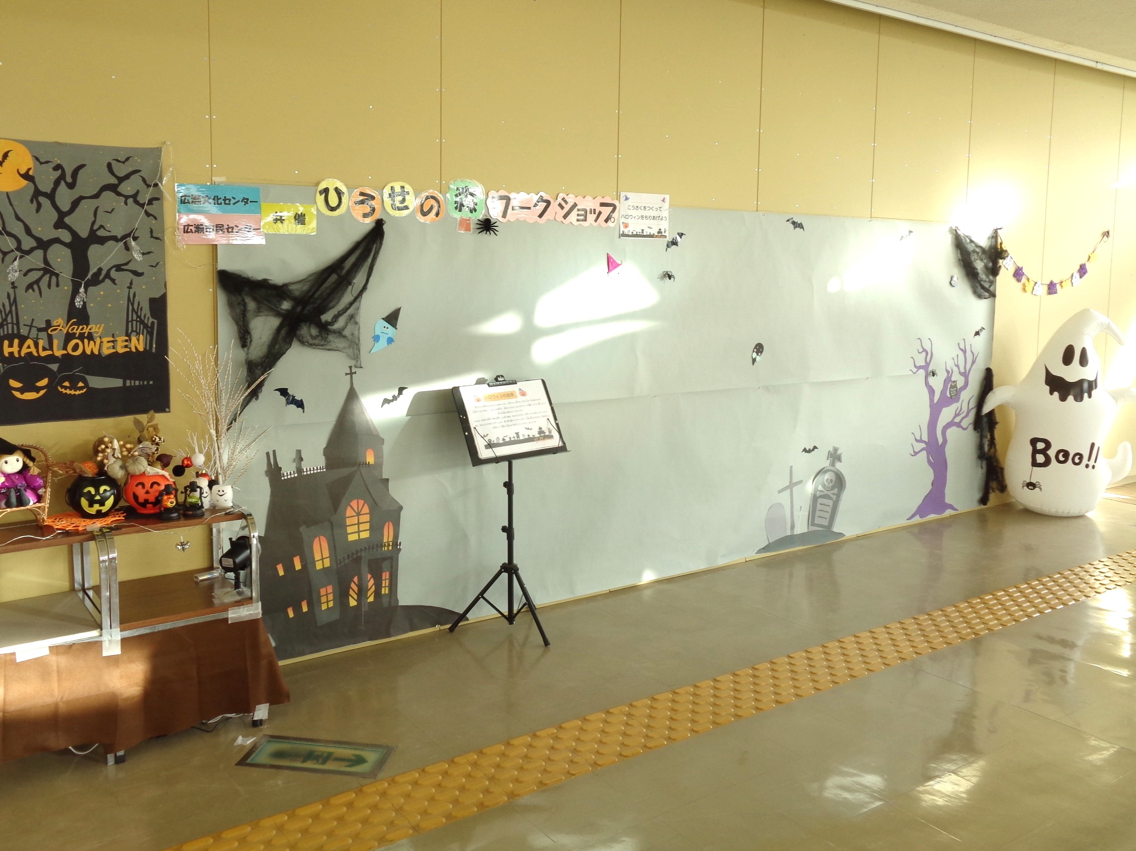 そのハロウィンにあわせて、10月10日から「ひろせの森ワークショップ~こうさくをしてハロウィンをもりあげよう~」を1階ロビーにて開催しています。