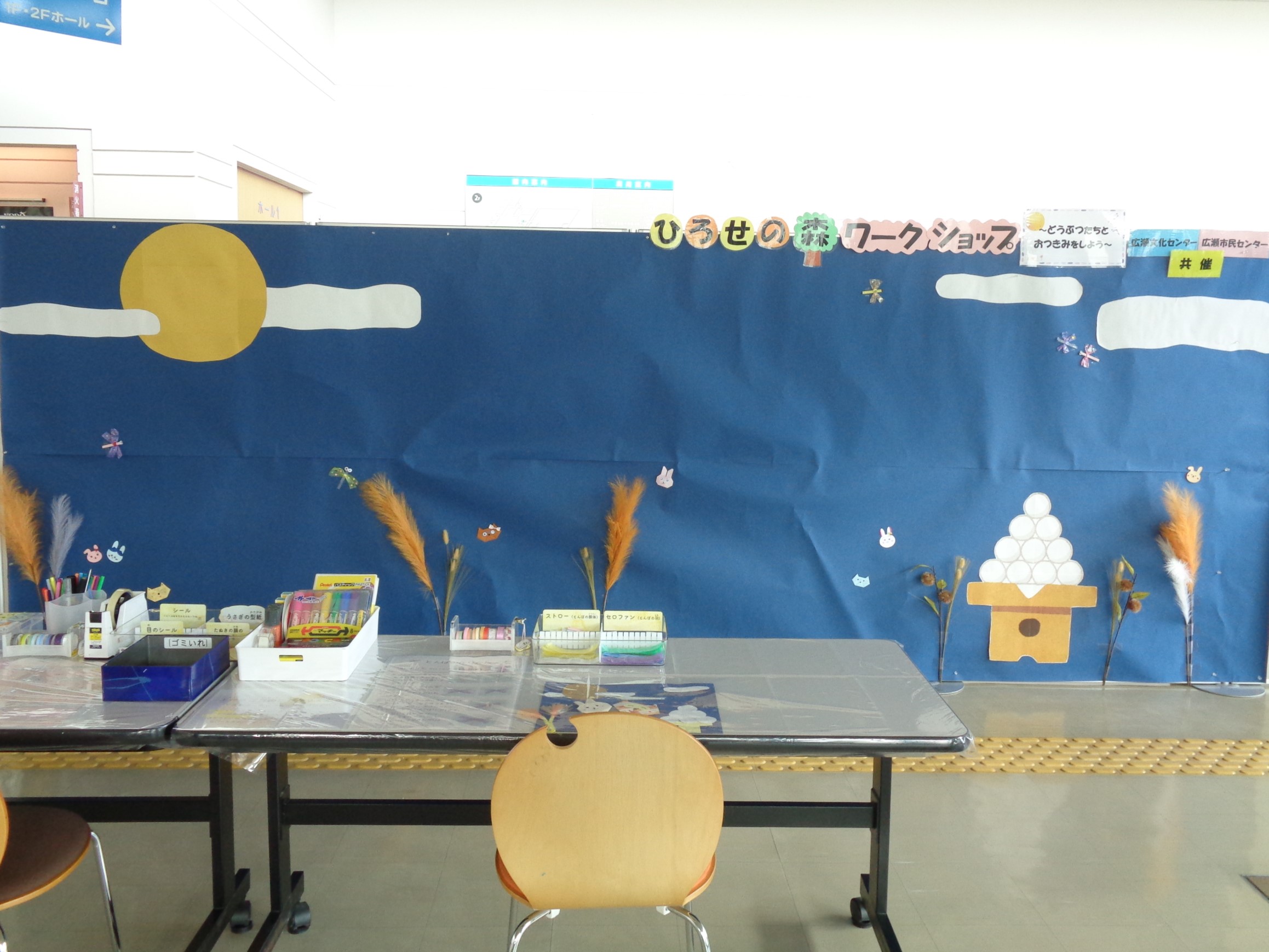 9月17日からは作物の豊作を祈る〈中秋の名月〉にあわせて、「ひろせの森ワークショップ~動物たちとお月見をしよう~」を1階ロビーにて開催中です。