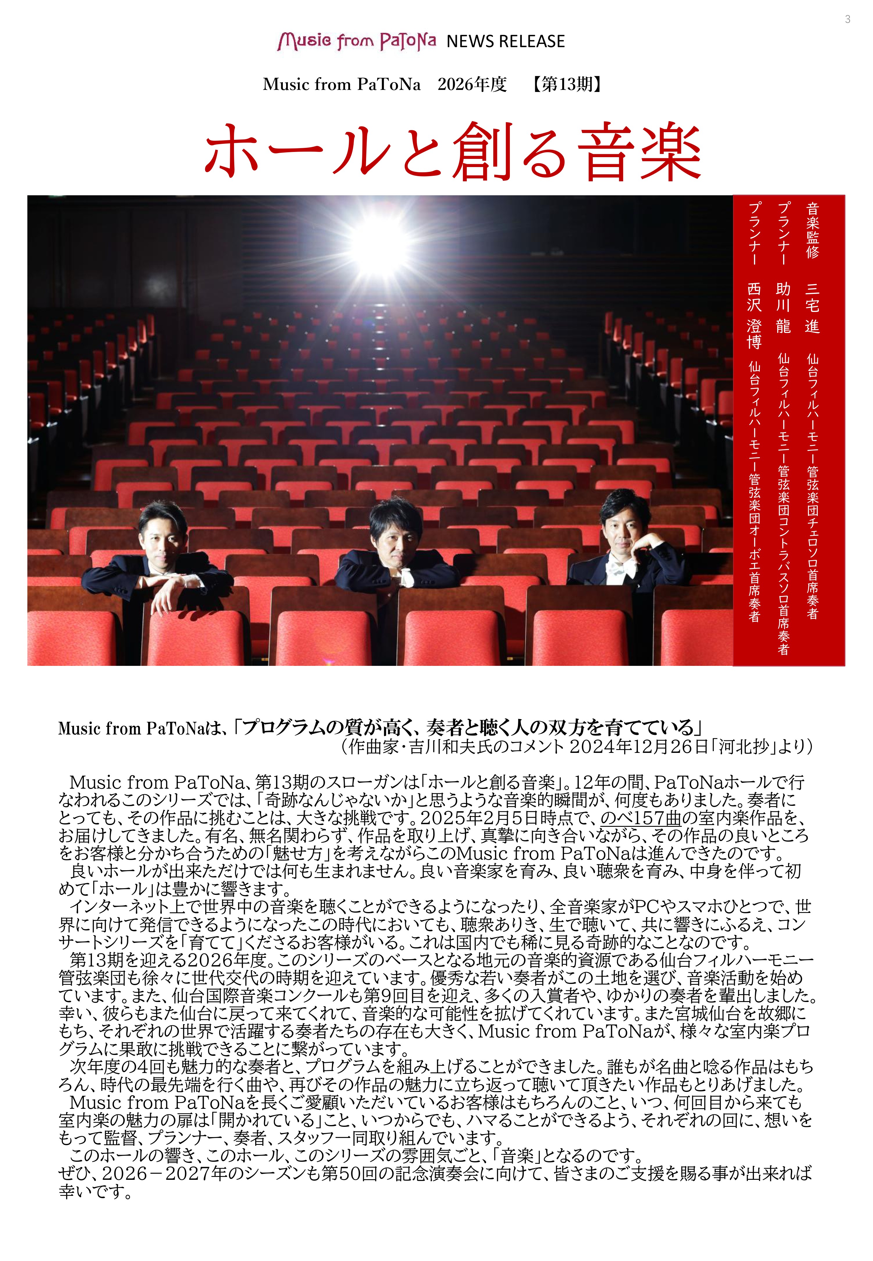 シリーズ13年目の年を迎える2026年は「ホールと創る音楽」をスローガンに、皆さまにお楽しみいただける