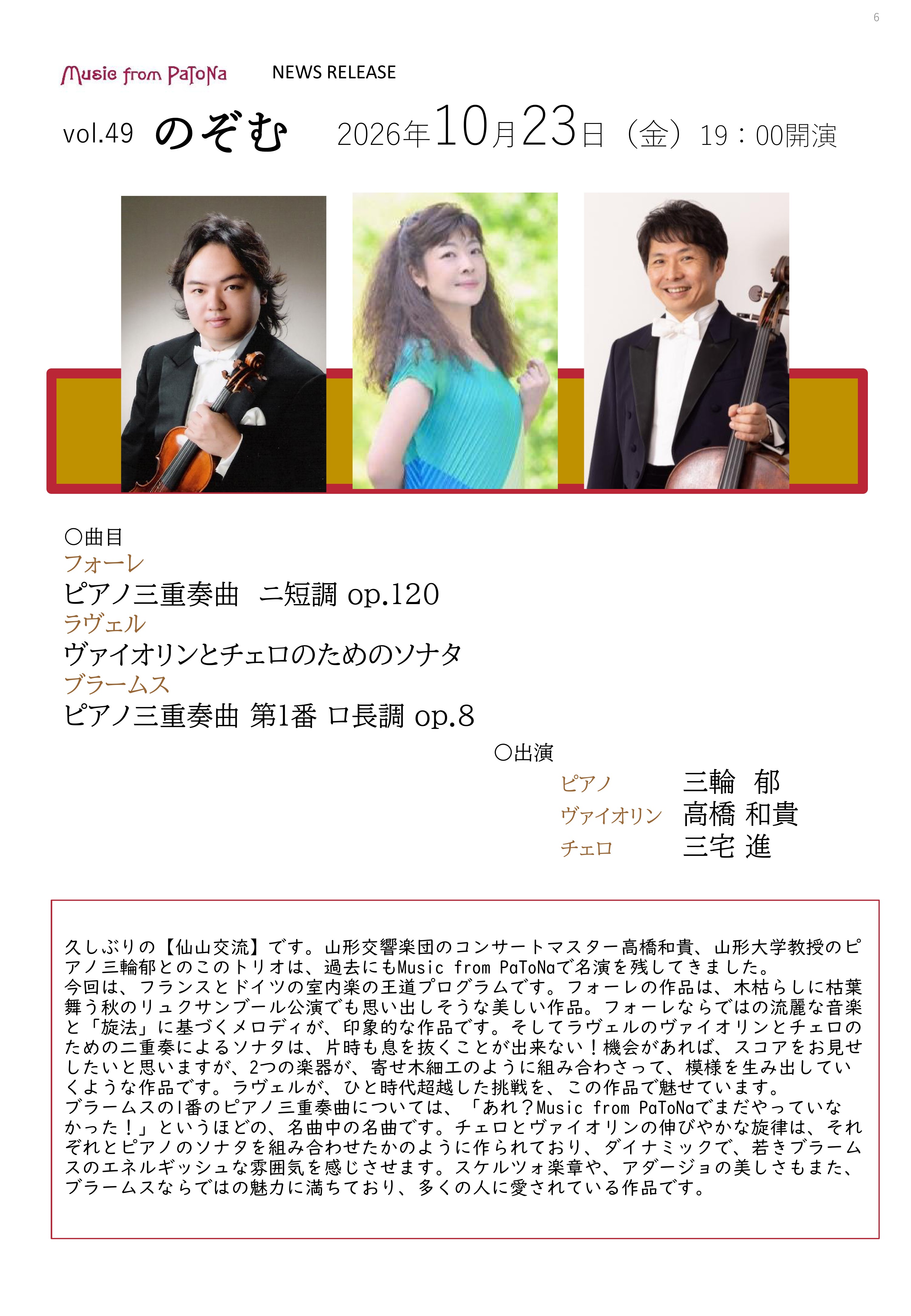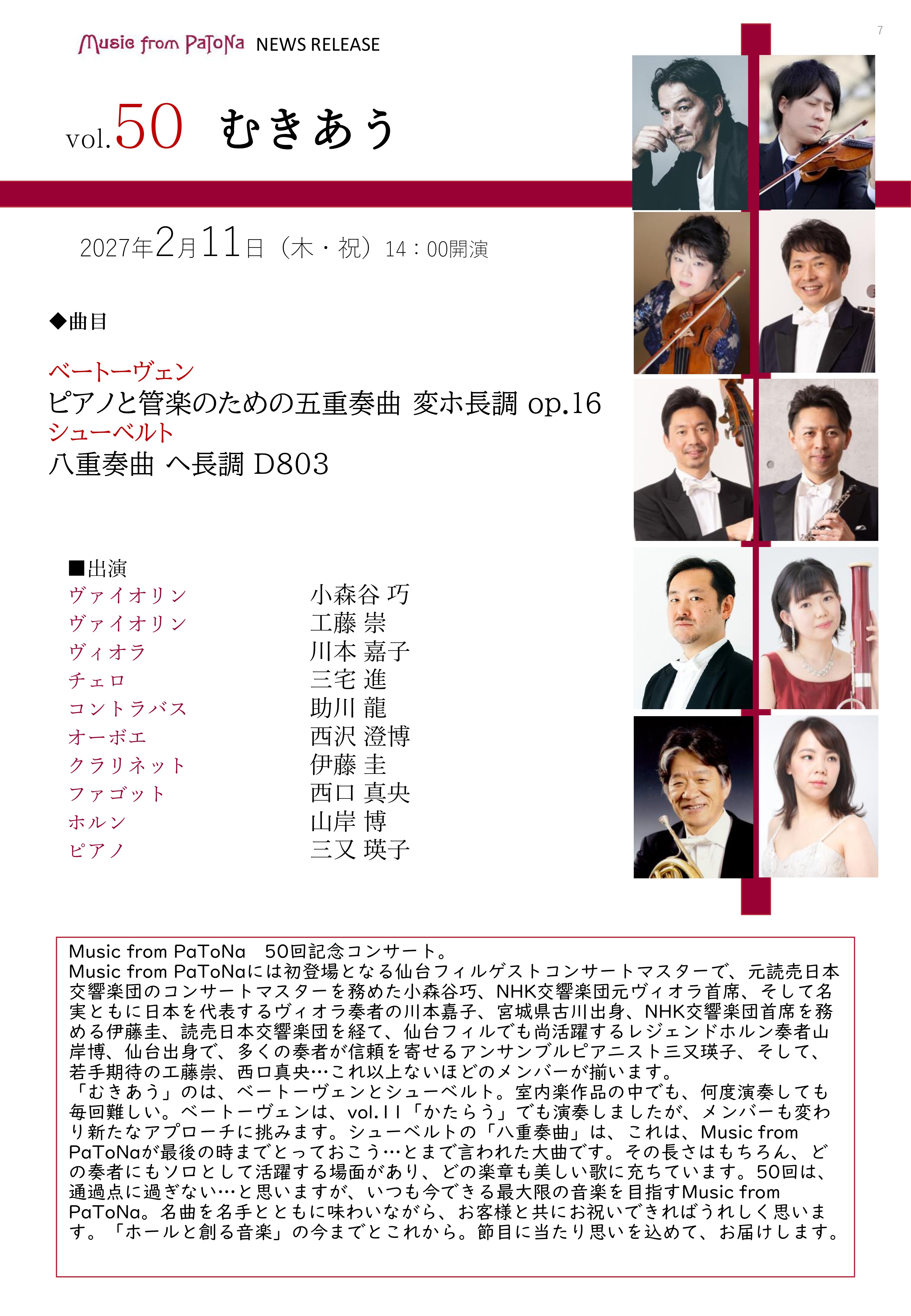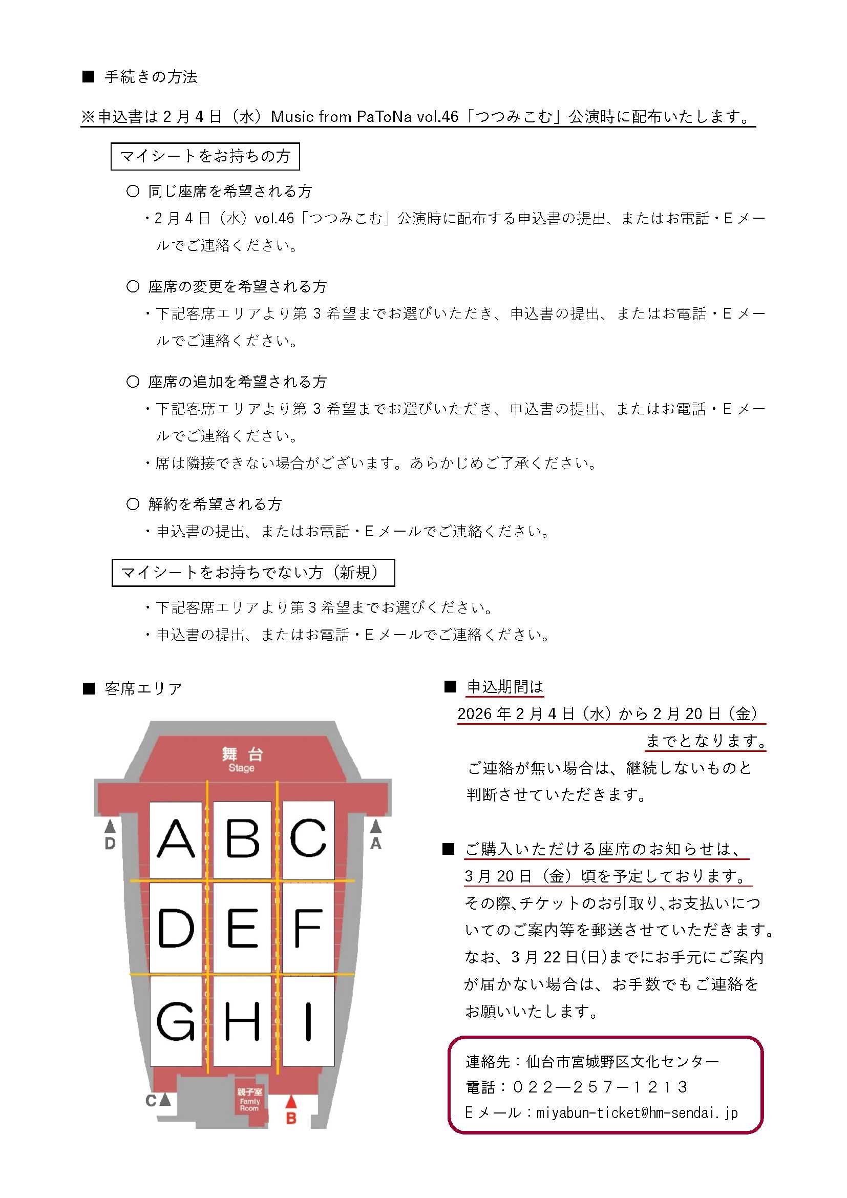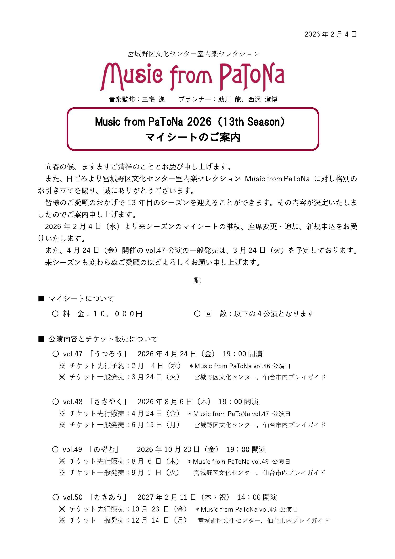マイシートは、Music from PaToNa 年4回の公演を、毎回同じ決まった