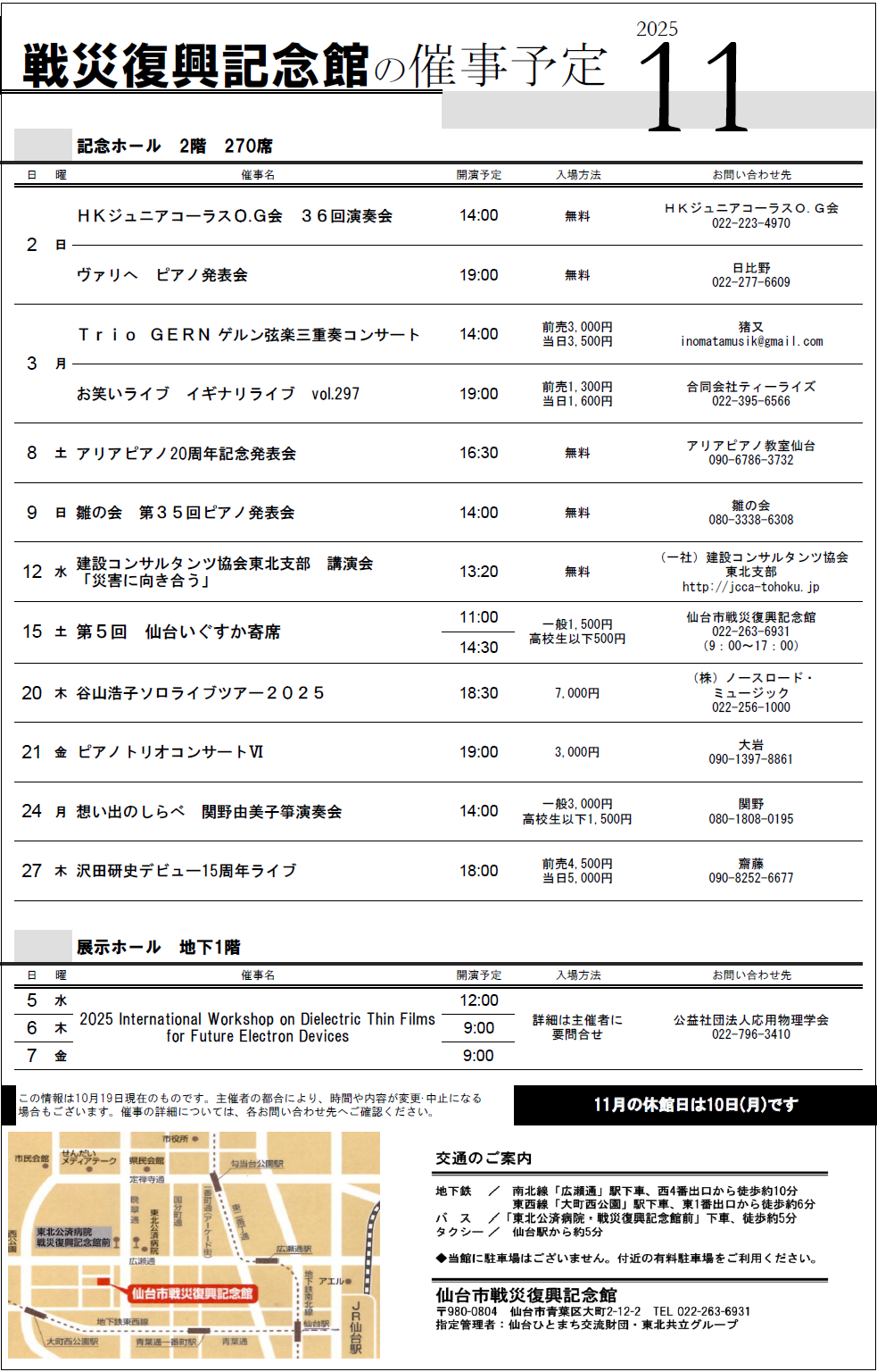 ※令和4年4月1日から仙台市戦災復興記念館は仙台ひとまち交流財団・東北共立グループが運営しております。
