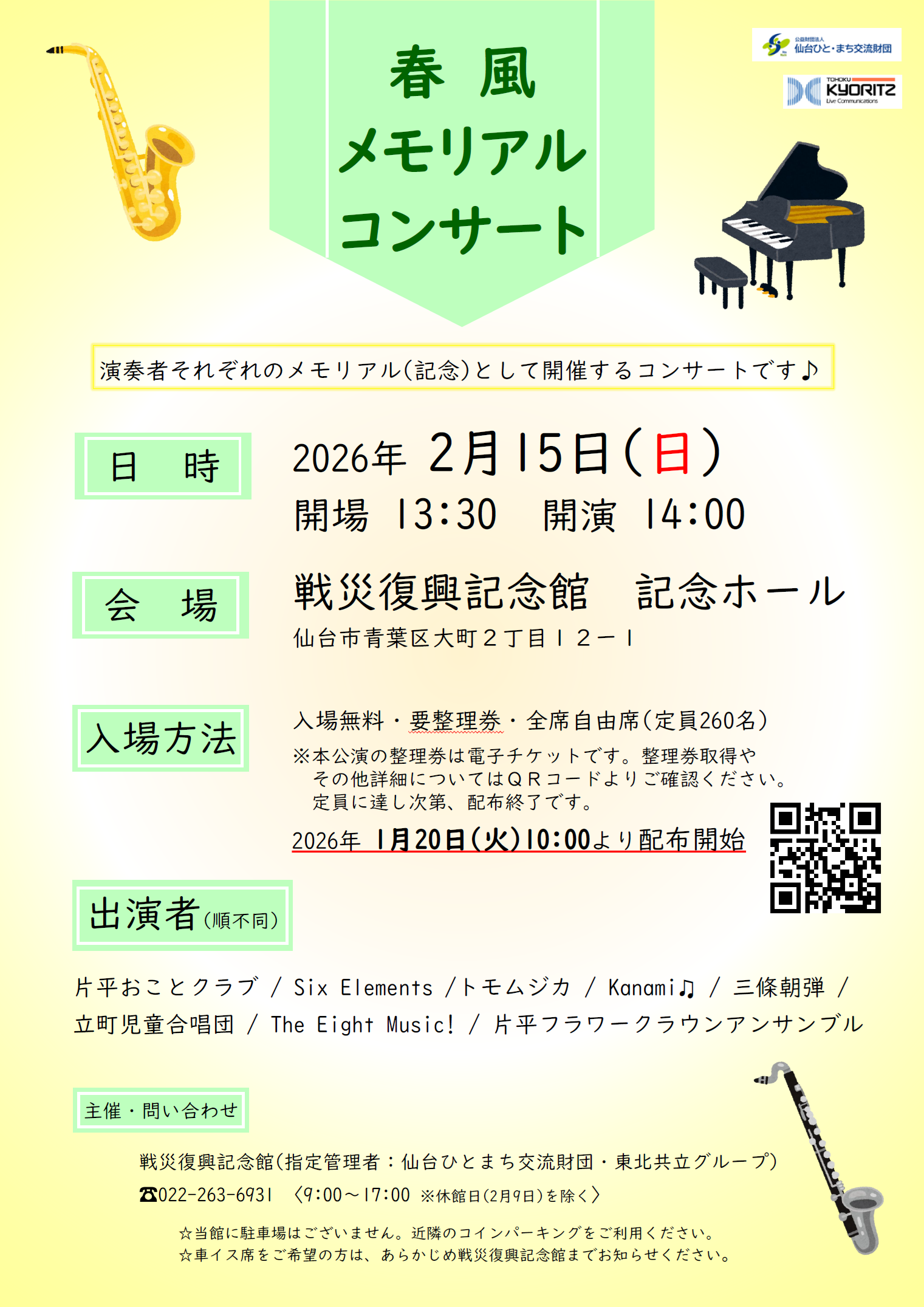 『春風メモリアルコンサート』を今年も開催いたします。皆さまのご来場をお待ちしております!