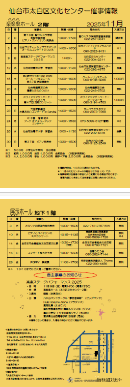 太白区文化センター11月の催事情報(10月3日現在)をお知らせいたします。