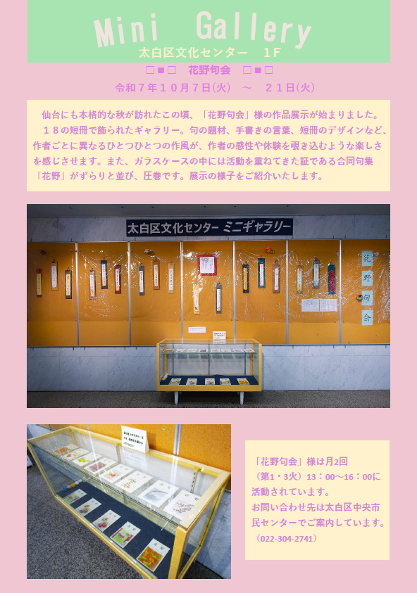 ただいま、太白区文化センター1階ミニギャラリーでは