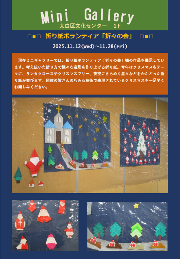 折り紙ボランティア「折々の会」様の作品展示を行っています。